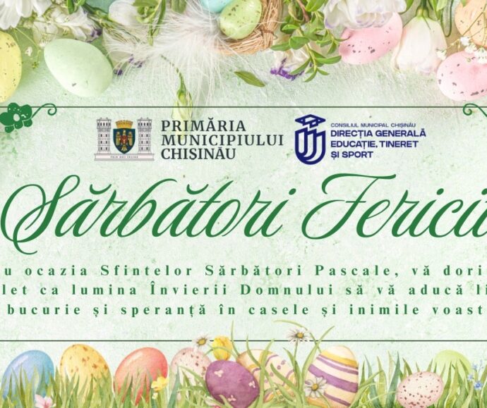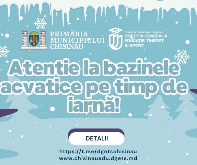 Noutăți 16/04/2026 Dragi colegi, cadre didactice, elevi, părinți și parteneri ai Direcției Generale Educație, Tineret și Sport Noutăți 20/03/2026 Școala Primară „Spiridon Vangheli” anunță înscrierea copiilor în clasa I pentru anul de studii 2026-2027 Noutăți 17/03/2026 Curățeniei de primăvară! Noutăți 03/03/2026 APEL PUBLIC IMPORTANT – CONSULTARE PLAN ANTIDROG 2026–2027 Noutăți 24/02/2026 Cu ocazia zilei de 24 februarie, când sărbătorim Dragobetele – simbol al iubirii, al primăverii și al bucuriei de a fi împreună – Direcția Generală Educație, Tineret și Sport adresează cele mai calde felicitări tuturor tinerilor, cadrelor didactice, părinților și partenerilor educaționali. Dragobetele, sărbătoare autentic românească, ne reamintește de frumusețea tradițiilor noastre și de importanța valorilor care ne unesc: respectul, prietenia, solidaritatea și iubirea față de cei din jur. Fie ca această zi să aducă în sufletele tuturor lumină, speranță și inspirație, iar primăvara care se apropie să fie un nou început plin de realizări, armonie și împliniri! La mulți ani de Dragobete! Noutăți 24/02/2026 24 februarie 2026 | 4 ani de solidaritate cu poporul ucrainean Noutăți 16/02/2026 Primăria municipiului Chișinău, prin Direcția Generală Educație, Tineret și Sport, informează elevii, cadrele didactice și părinții despre oportunitatea de a participa la Concursul de Inovație Tehnică & IT „Da Vinci” – ediția a XI-a. Noutăți 14/02/2026 “Grigore Vieru a scris cu sufletul, iar în fiecare vers a lui bate o inimă românească “ Noutăți 12/02/2026 Ziua Siguranței pe Internet Noutăți 10/02/2026 Conferința municipală ANTIDROG Evenimente 26/03/2026 Primăria Chișinău te cheamă să fii activ, responsabil și cu adevărat COOL! Evenimente 12/01/2026 Atenție la bazinele acvatice pe timp de iarnă! Evenimente 29/08/2025 Ziua Limbii Române! Evenimente 30/05/2025 Ziua Copiilor! Evenimente 22/03/2024 Școala specială nr. 12 pentru copii hipoacuzici și surditate tardivă Evenimente 27/12/2023 La mulți ani! Evenimente 01/02/2021 Direcţia Generală Educaţie, Tineret şi Sport a Consiliului municipal Chişinău informează despre continuarea campaniei naționale „Înveți. Muncești. Câștigi!” Evenimente 30/12/2020 La mulți ani!