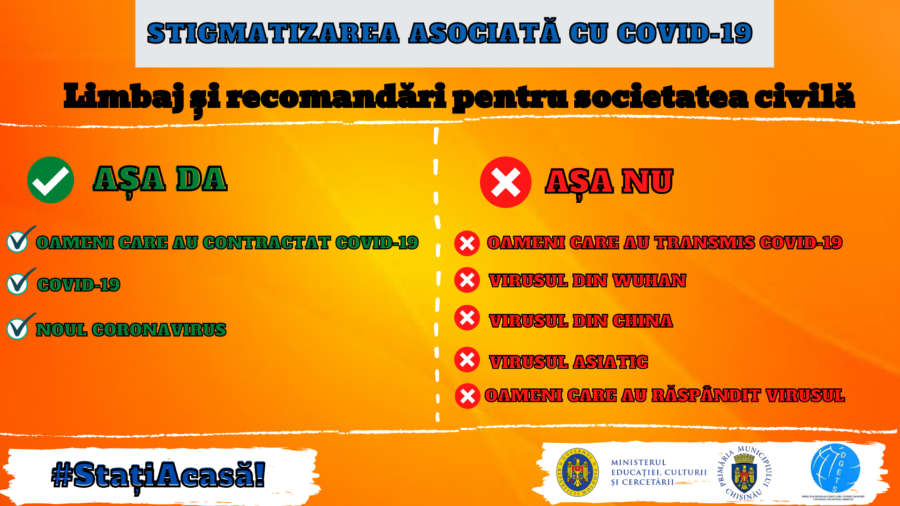 Direcția Generală Educație, Tineret și Sport a Consiliului municipal Chișinău vă informează că stigma socială poate afecta sănătatea fizică, emoțională și mentală a subiecților stigmatizării. Mai mult, stigmatizarea are consecințe grave și asupra sănătății publice, deoarece îi poate determina pe oameni să ascundă boala, să amâne solicitarea imediată de asistență medicală și îi poate descuraja să adopte comportamente sănătoase. Astfel, fenomenul creează un sol fertil pentru răspândirea și mai rapidă a virusului și poate cauza dificultăți în eforturile de luptă cu pandemia. Stigma poate duce, de asemenea, la un comportament discriminatoriu, care poate avea din nou un impact asupra diferitelor drepturi ale omului, în afară de dreptul la sănătate, inclusiv dreptul la muncă, dreptul la educație și dreptul la participare.