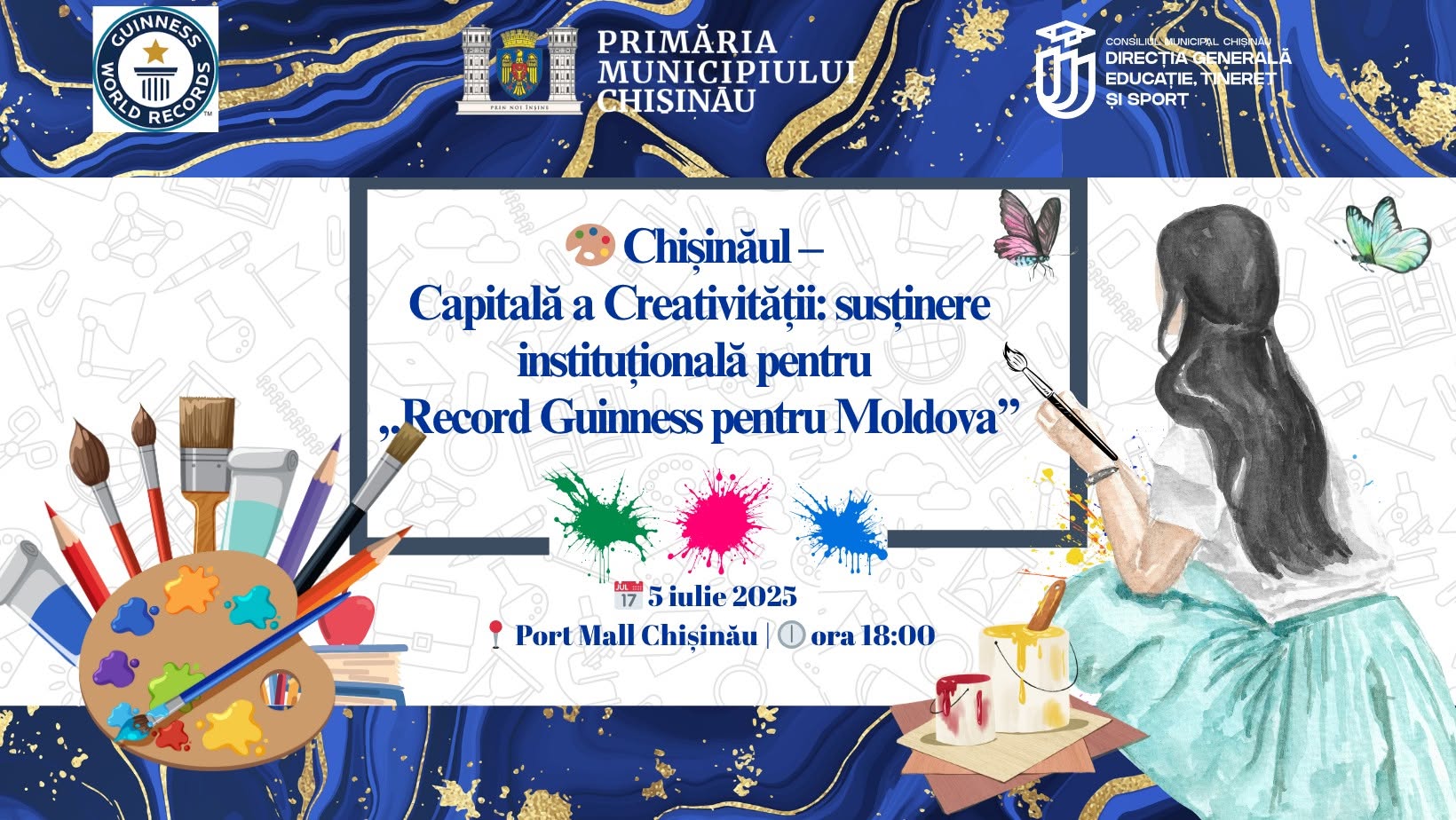 Primăria municipiului Chișinău și Direcția Generală Educație, Tineret și Sport susțin organizarea unui eveniment fără precedent pentru cultura contemporană din Republica Moldova – „Record Guinness pentru Moldova”, o inițiativă artistică cu rezonanță internațională.