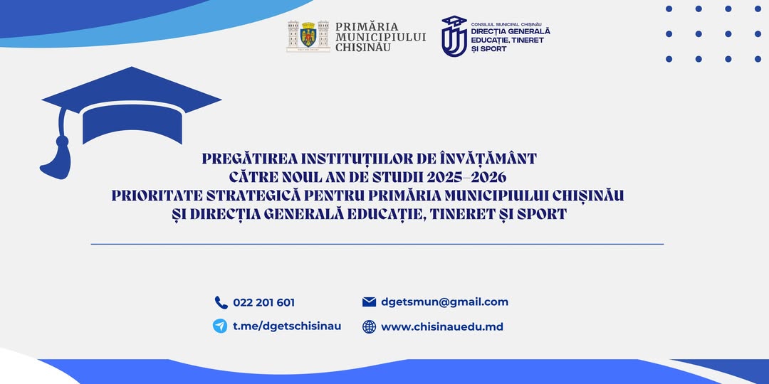 În vederea asigurării unei reluări optime a procesului educațional în municipiul Chișinău, Primăria capitalei și Direcția Generală Educație, Tineret și Sport (DGETS) au inițiat și coordonează, în perioada 18–22 august 2025, procesul complex de evaluare a nivelului de pregătire a instituțiilor de învățământ general (preșcolar, școlar și extrașcolar) pentru anul de studii 2025–2026.