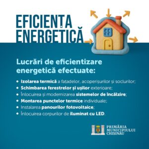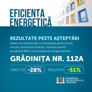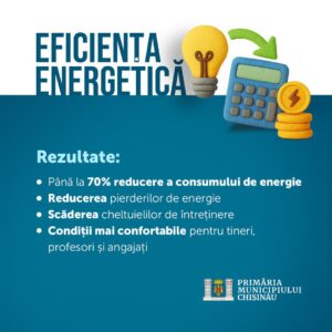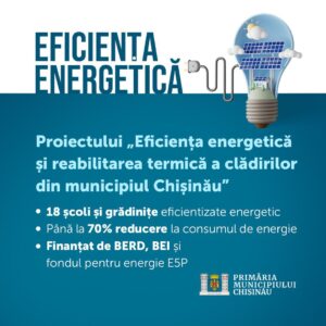 Primăria municipiului Chișinău, prin intermediul Direcției Generale Educație, Tineret și Sport, a realizat, în perioada 2020–2025, un amplu program de creștere a eficienței energetice în școli și grădinițe, cu scopul de a reduce consumul de energie și de a crea condiții mai bune pentru copii și cadrele didactice.