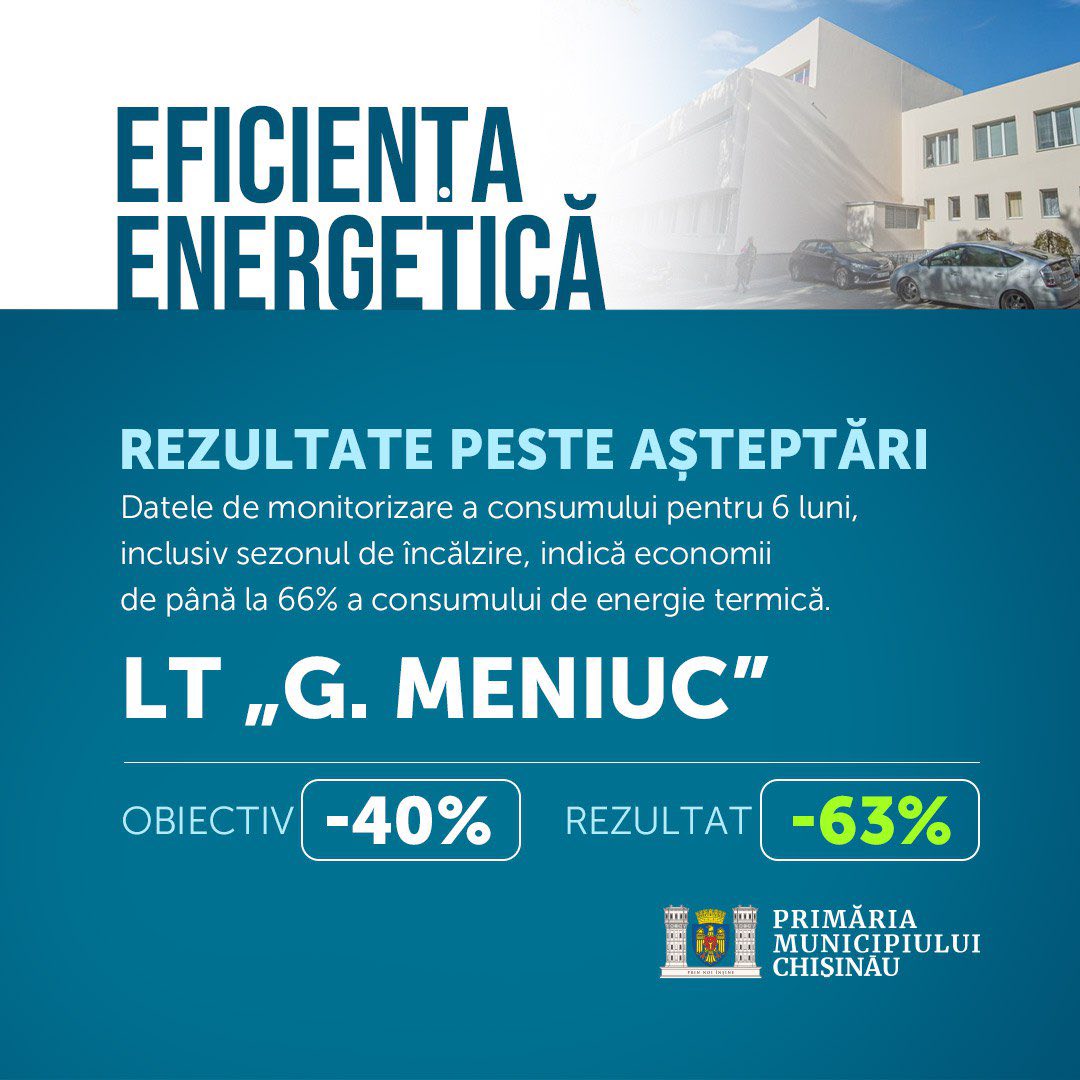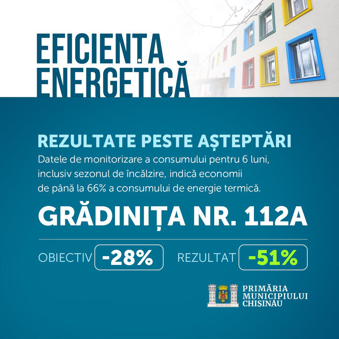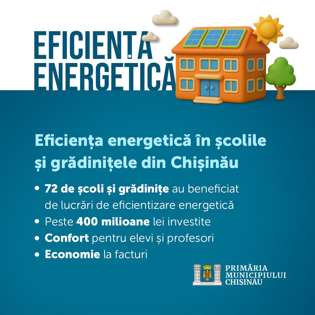 Primăria municipiului Chișinău, prin intermediul Direcției Generale Educație, Tineret și Sport, a realizat, în perioada 2020–2025, un amplu program de creștere a eficienței energetice în școli și grădinițe, cu scopul de a reduce consumul de energie și de a crea condiții mai bune pentru copii și cadrele didactice.