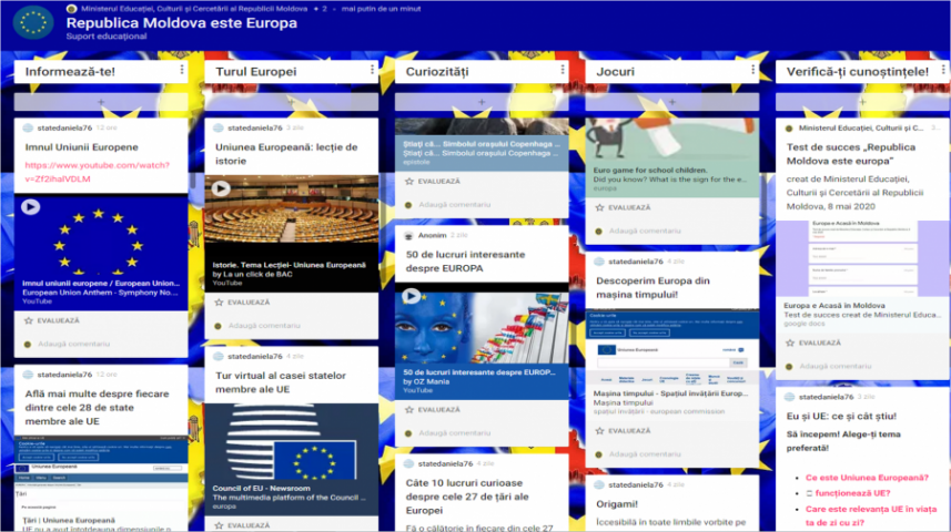 Ministerul Educației, Culturii și Cercetării recomandă tuturor pedagogilor din țară să desfășoare, în perioada 4 – 8 mai 2020, săptămâna cu genericul „Republica Moldova este Europa”, în...
